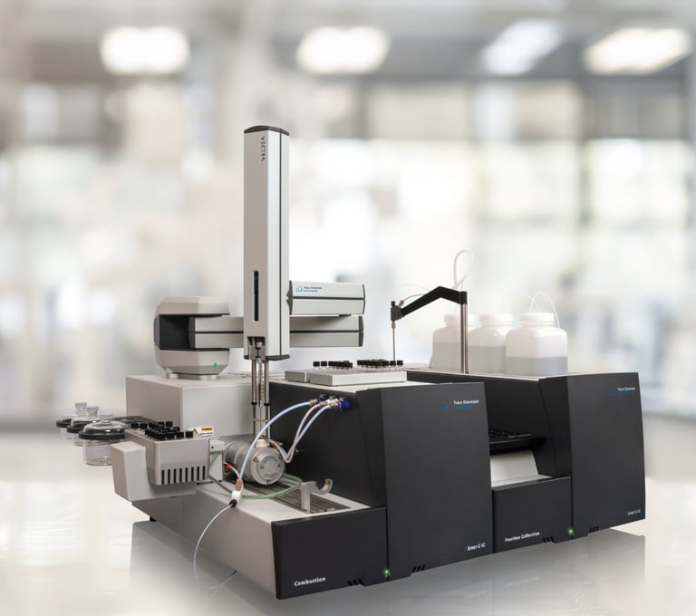 除了對樣品燃燒過程進行全面控制外,Xprep C-IC 不僅能收集氧化後的氣體流,還能自動將一部分吸光度溶液轉移至任何主流的離子色譜系統。它是滿足日益增長的腐蝕性鹵素(氟、氯、溴、碘)和硫化合物(例如硫酸鹽、亞硫酸鹽、硫代硫酸鹽)在不同基質中分析需求的理想解決方案。這些分析物需要監測,因為它們具有腐蝕性,會使催化劑中毒,損壞工業設備,並且對環境有害