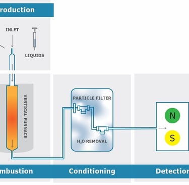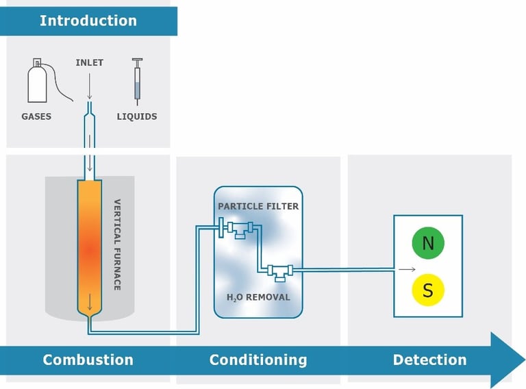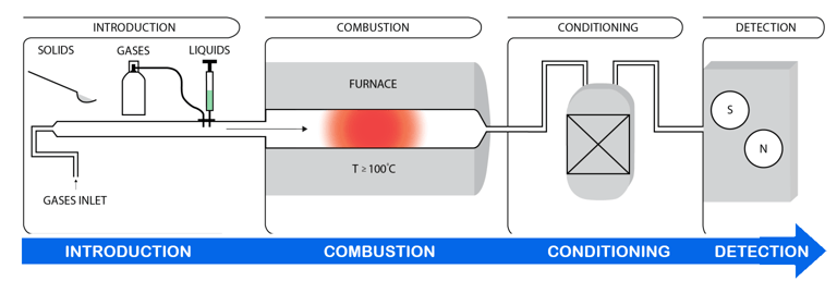 樣品完全氧化後,通過去除水蒸氣和顆粒物來調節燃燒氣體。