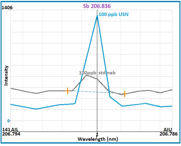 U5000AT+ 可將更多樣品轉化為可用氣溶膠,其轉化效率高達 10-15%,而傳統氣動霧化器的轉化效率僅為 2-3%。這使得分析物訊號強度和檢測極限提高了 10 倍。例如,圖 1 顯示,使用 U5000AT+ 結合 ICP-OES 檢測,銻 (Sb) 的訊號強度提高了約 8 倍。對於 ICP-OES 檢測,許多元素的檢測極限可低於 1µg/L。對於 ICP-MS 檢測,可達到亞奈克/公升 (sub-ng/L) 的檢測極限;在無塵室條件下,甚至可獲得更低的檢測極限。短期(60 分鐘)和長期(8 小時)穩定性極佳,相對標準差 (%RSD) 通常小於 1%。